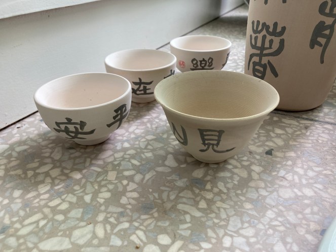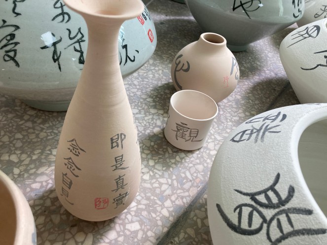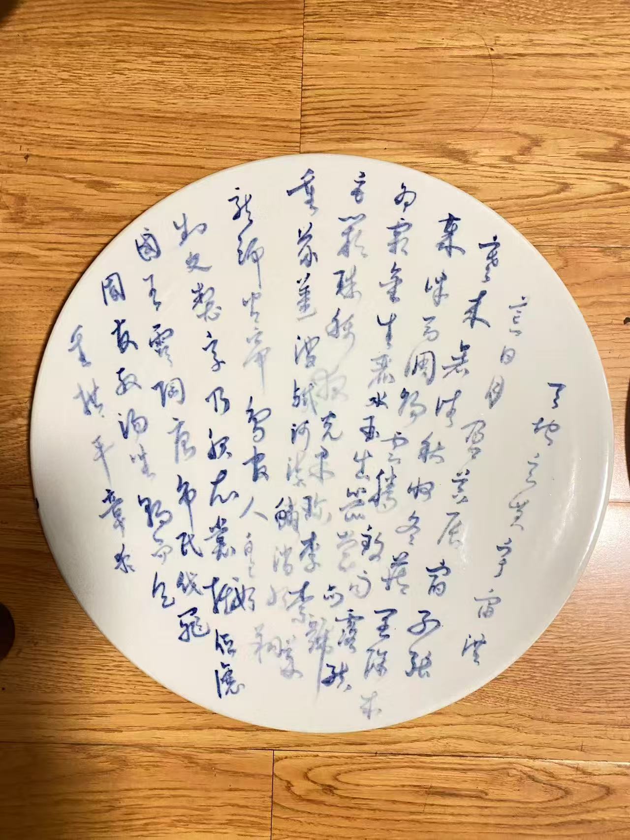 最重要的,是要心神合一,在陶瓷上书写不像在纸上,因为材质的不同,而且是曲面的,所以很容易把字写丑,我自认为学过2年书法,结果第一幅作品烧出来确实不咋地。
